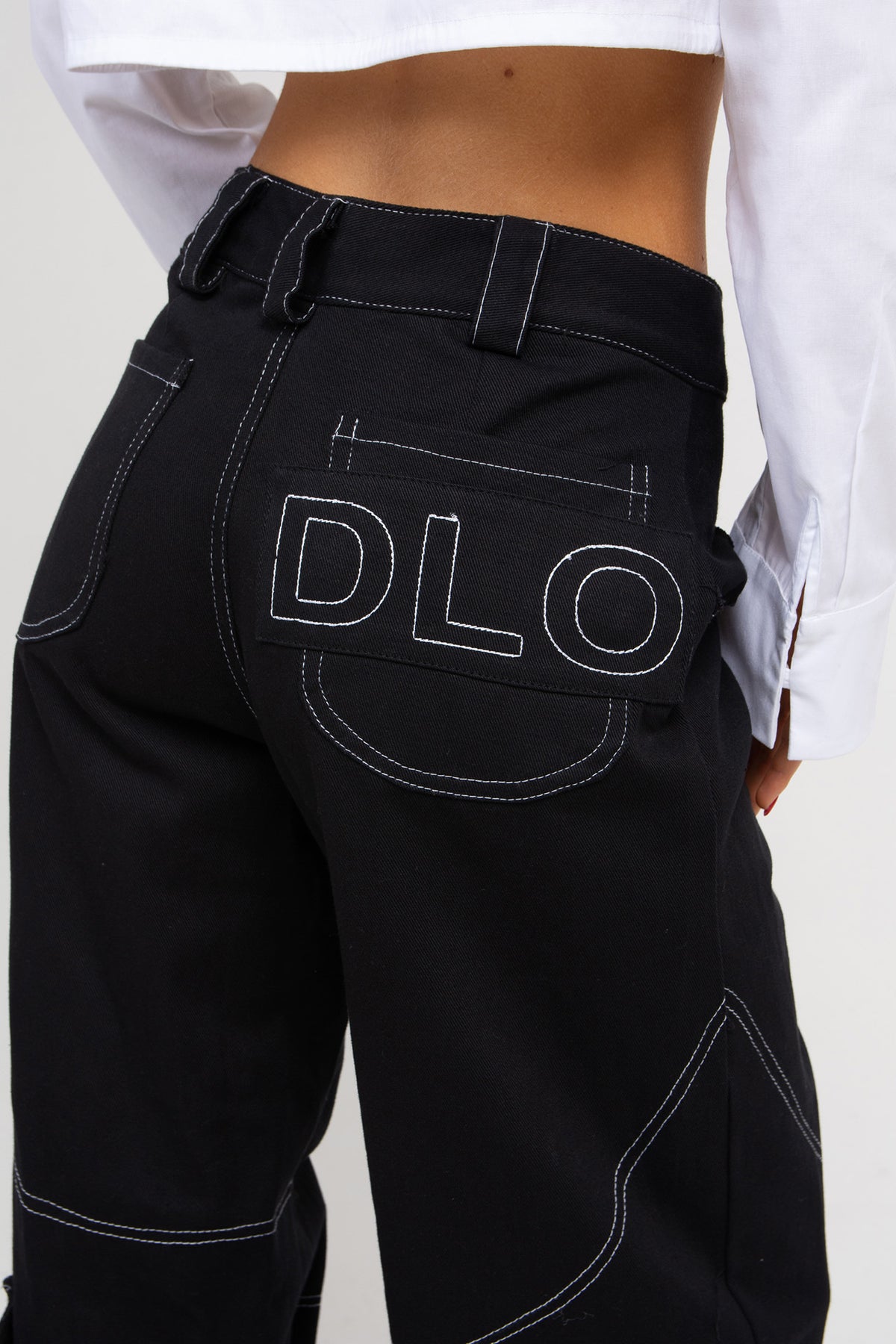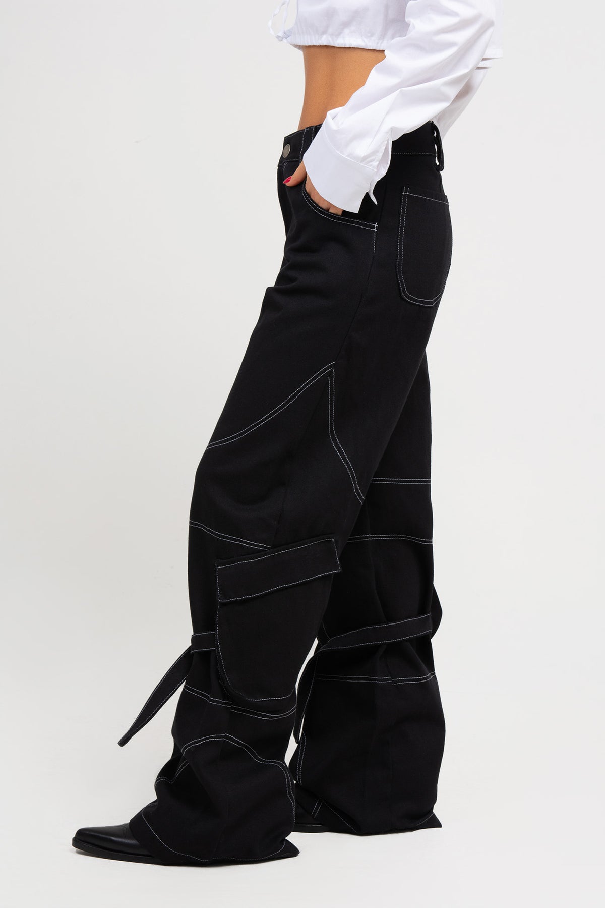 Pantalón cargo lavado con costuras a contratono, bolsillos cargo y bordado de marca.