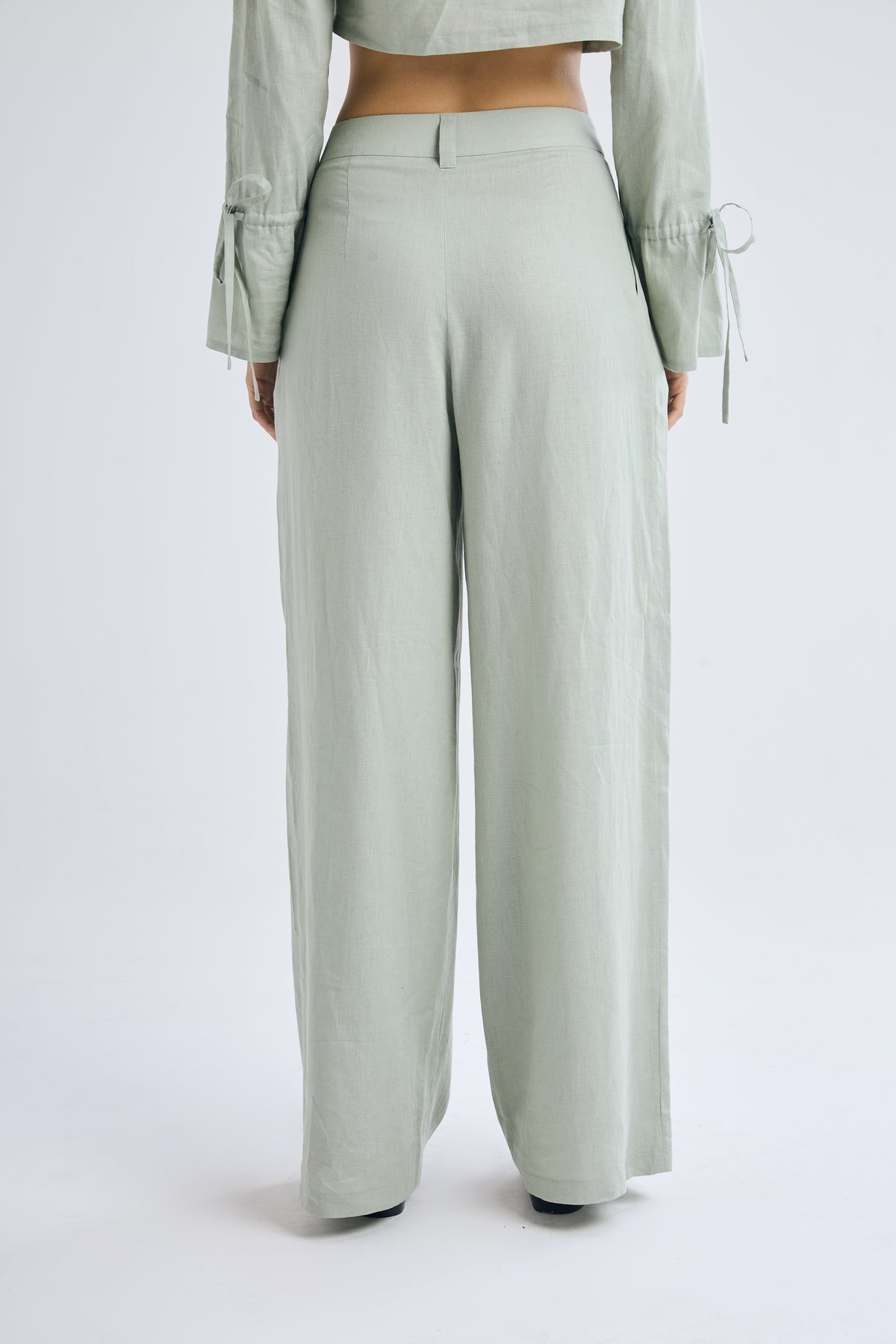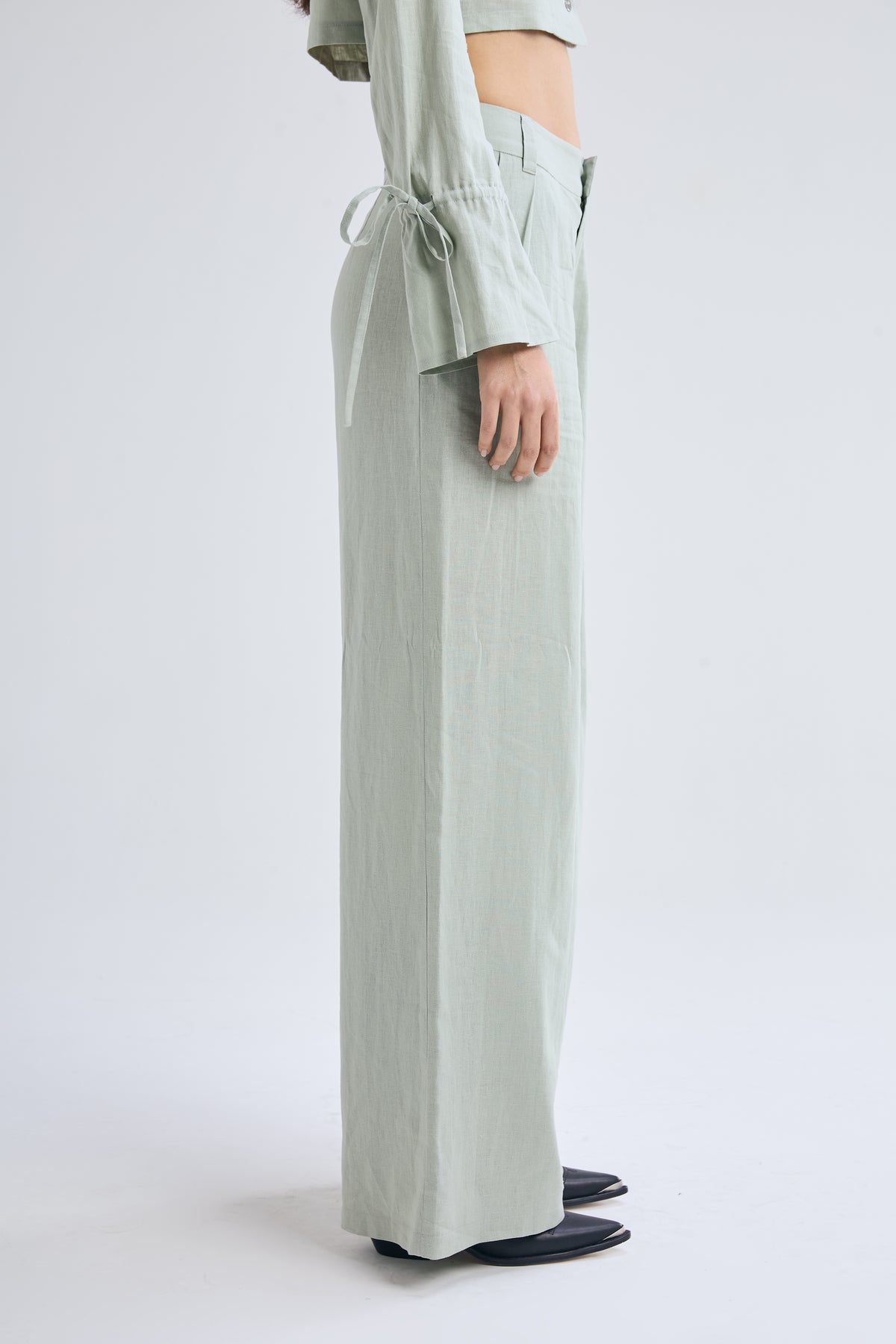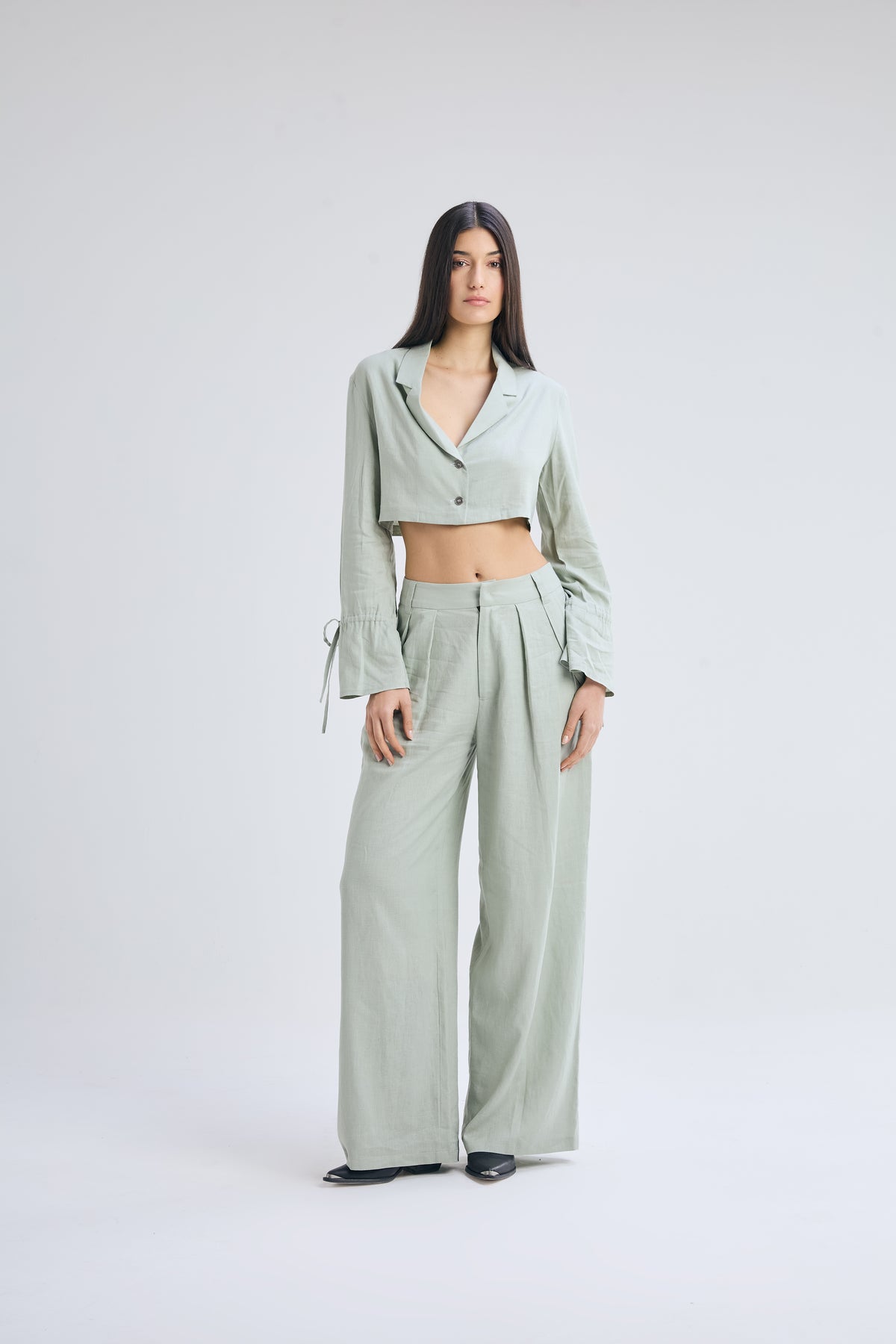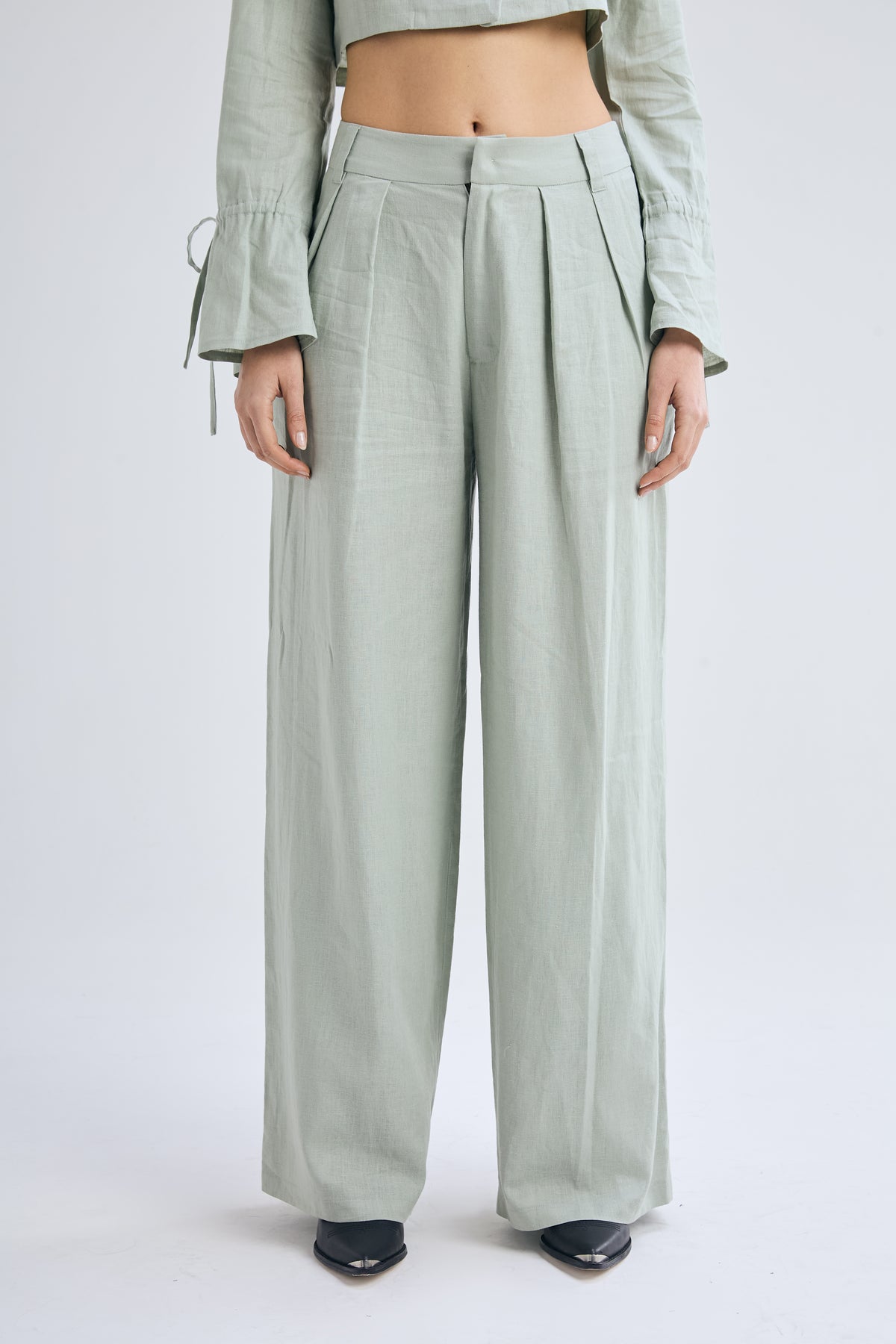 PANTALÓN SASTRERO CON PINZAS DE ENTALLE, CALCE RECTO Y ANCHO. LARGO HASTA EL TOBILLO. COMBINALO CON SU CAMISA EN CONJUNTO.