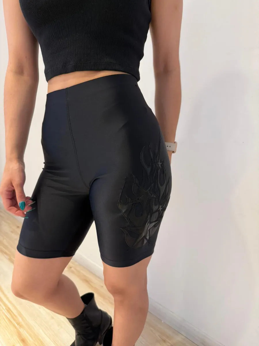 Calza estilo biker en lycra , con cintura. Silueta Slim, largo modular a media pierna.