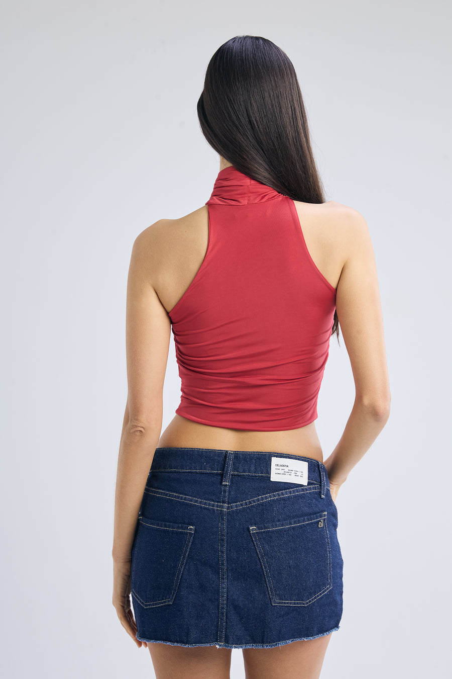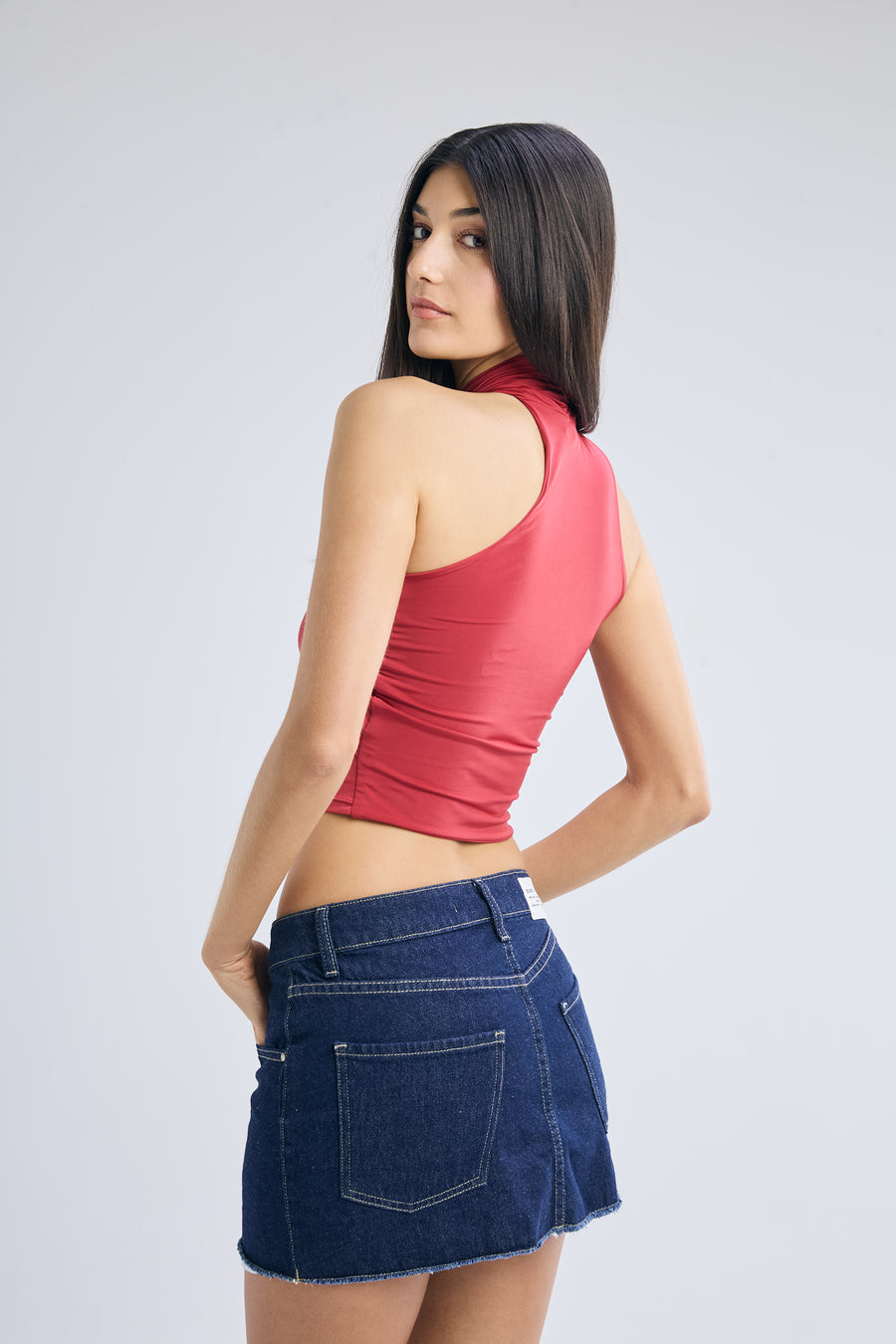 Musculosa con una pieza agregada que se entrecruza en el cuello.
