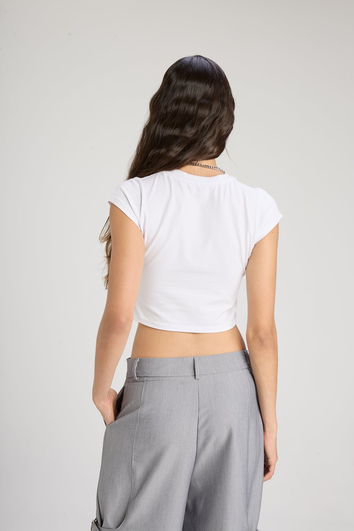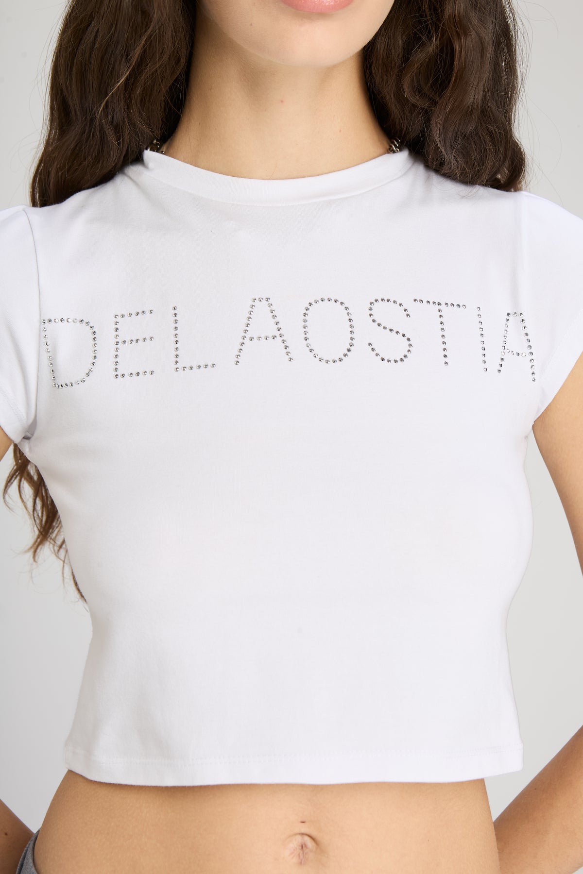 Baby tee con estampa marcaria en delantero .