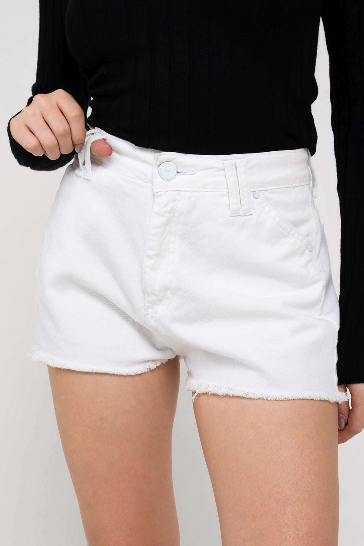 Short de jean con elasticidad tiro alto, doble presillas delanteras y ruedo al corte con desgastes. Silueta al cuerpo.